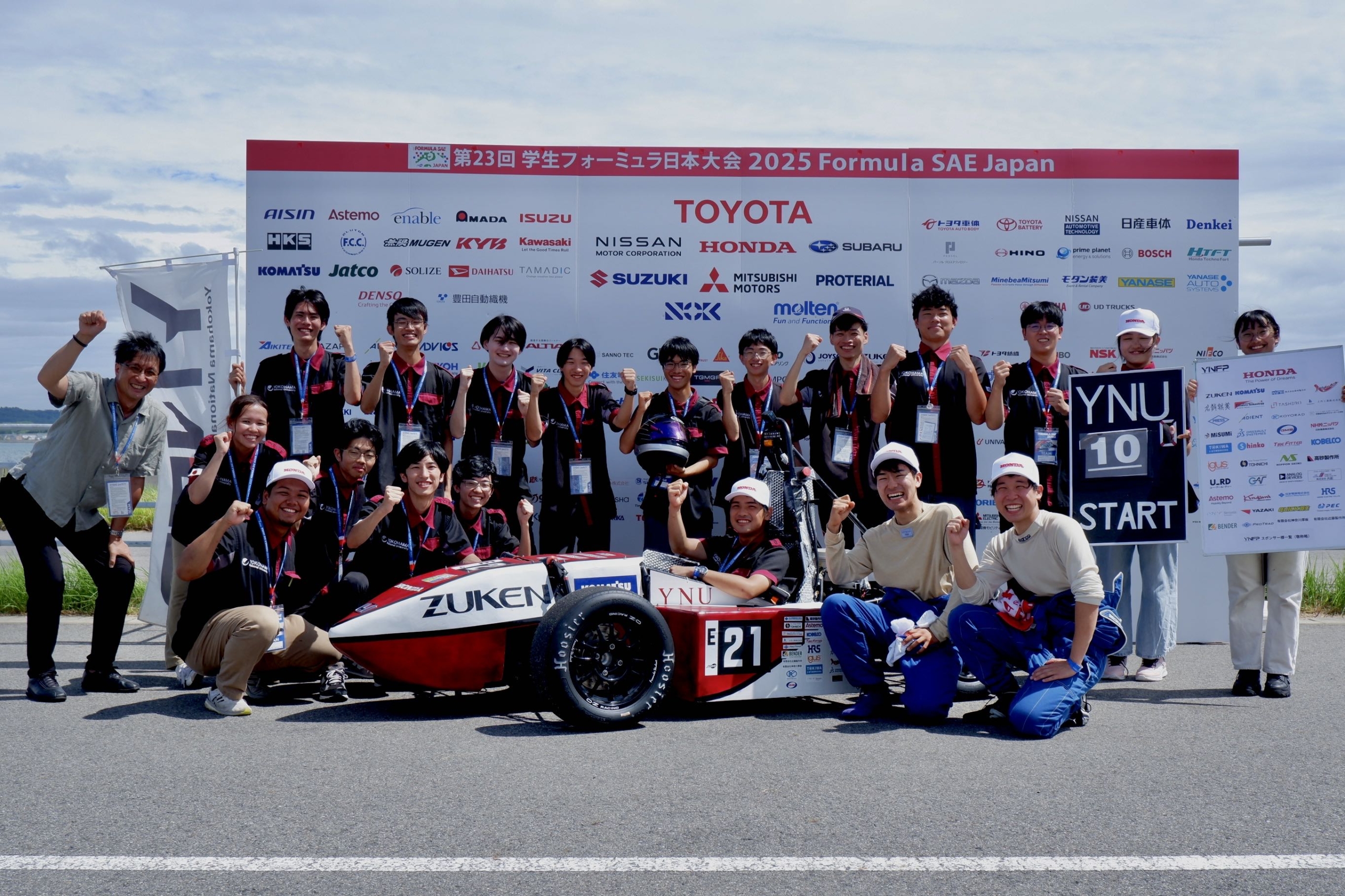 横浜国立大学フォーミュラプロジェクト(YNFP)は、2003年に横浜国立大学工学部の学生4名によって設立された学生フォーミュラチームです。私たちは学生主体で、フォーミュラタイプの小型レーシングカーを一から企画・設計・製作・運用まで行い、実際に車両を作り上げる過程を通して、自分たちの技術力や開発力を高めることを目指して活動しています。
